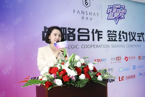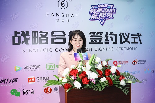 首先邀请梵秀伊代表张灵燕女士上台发言。她则表示,梵秀伊是一个因美而生,为美服务的品牌,始终坚持以用户需求为导向进行品牌打造。本次梵秀伊与《OMB我是你的蓝朋友》合作,正是因为梵秀伊都有着与《OMB我是你的蓝朋友》同样的美丽使命,帮助并协助她们找到专属自已的美丽,拥有加倍自信去追逐自己的梦想。