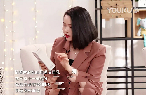 李微老师手拿起梵秀伊安肌舒缓净柔洁面乳介绍到,比如这款洁面乳,它只有十一种成分,且90%以上都是来源于大自然。