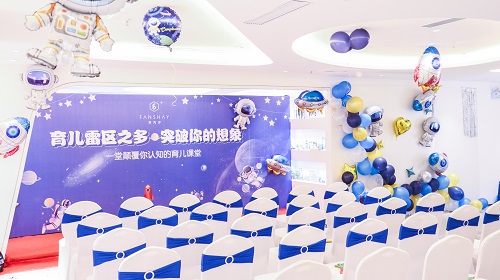 随着音乐的响起,这场充满星空梦幻的知识分享缓缓拉开序幕,宝妈和梵秀伊护肤团老师们纷纷用气球堆砌而成的“星空墙”打卡留念,现场热闹非凡,随后邀约而来的宝妈们也十分有序的入座。