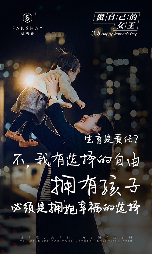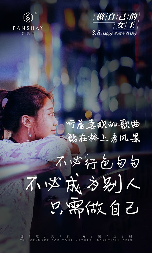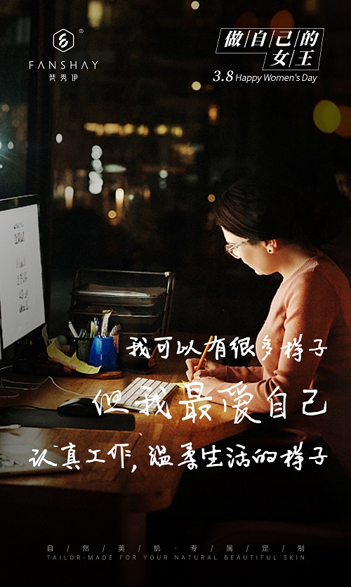 梵秀伊作为一个新锐护肤品牌,自创立之初便一直致力于为女性带来专属定制的自然健康护肤理念,我们为每一位用户提供一对一专属的服务和指导,让美有迹可循,助力女性散发美丽自信的光彩。3月8日,在这个有意义的节日里,梵秀伊希望我们的女性朋友,能够坚强、独立、自信,不管任何时候都要“做自己的女王”,人生不是不听劝,而是听取合适的意见。人生的选择从来不是单一的,每一个做自己的女性都是独一无二的。